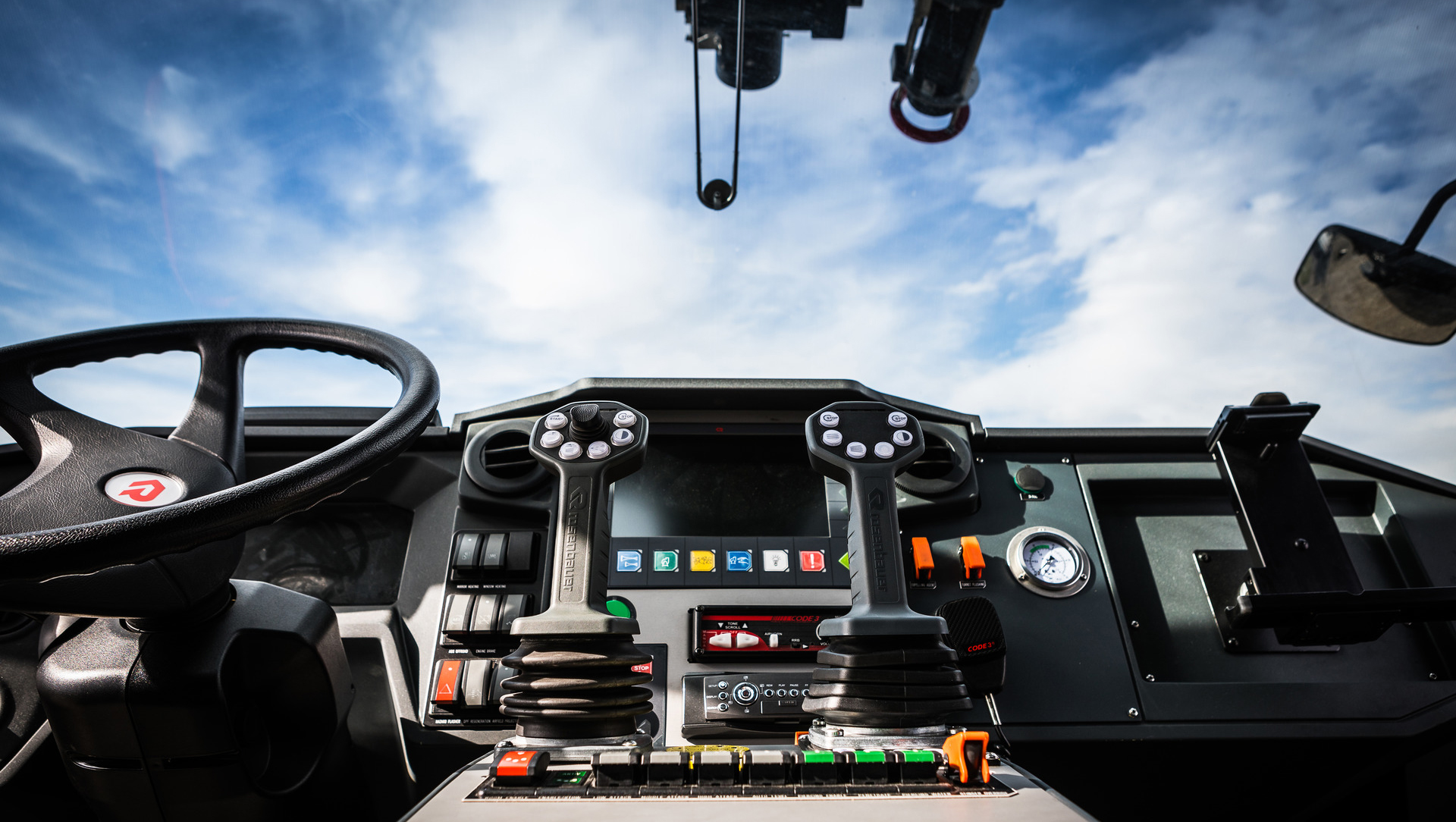 Verbesserungspotenzial sehen die Anwender auch in der Bedienung der Fahrzeuge. Sie sollte einfacher und die Steuerung der Werfer genauer sein. Rosenbauer entwickelt daraufhin eine neue Generation von Joysticks und Steuergriffen, die präzise „aus dem Handgelenk“ gesteuert werden kann und die gleiche Bedienlogik aufweist. Außerdem sind sie nun alle mit einer Lightguide-Funktion ausgestattet, die optisch ersichtlich macht, in welche Richtung ein Werfer gerade zeigt.
